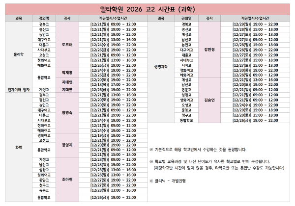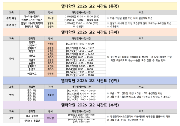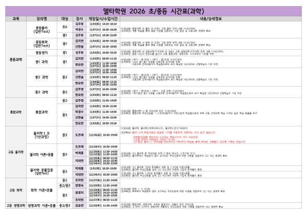 ※시간표는 2026 학년 기준으로 확인 부탁 드립니다.