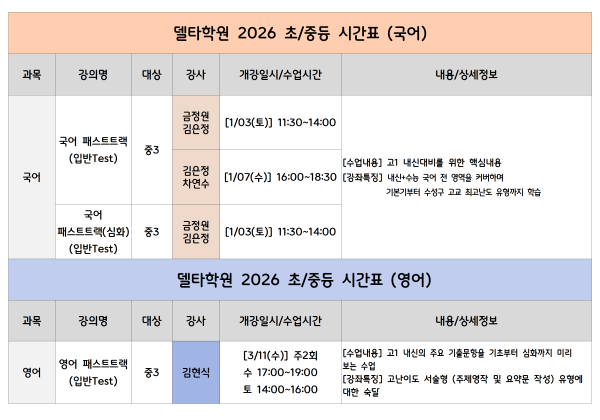 ■ 2026 개강 시간표 안내드립니다.