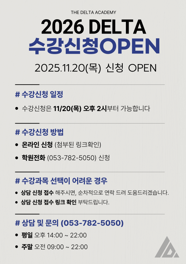 ☞온라인 수강신청 링크 : https://delta-5050.github.io/delta/