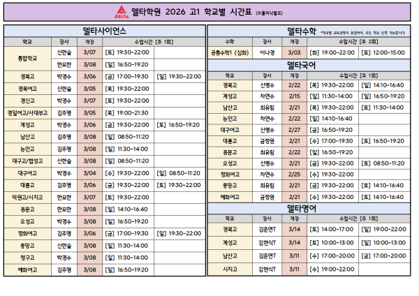 ●델타수학(3/03(화)~)