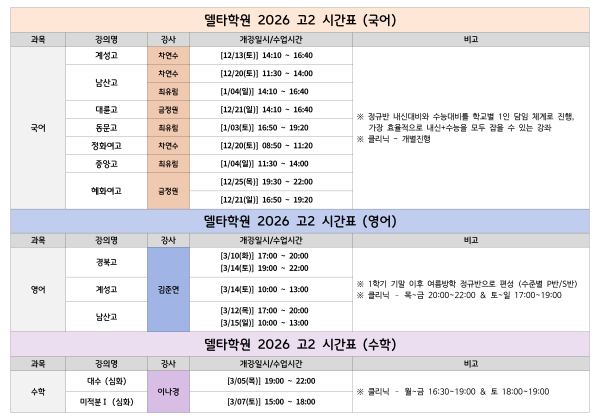 ■ 2026 개강 시간표 안내드립니다.