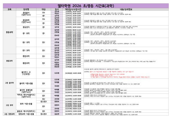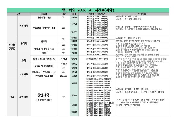 ※시간표는 2026 학년 기준으로 확인 부탁 드립니다.