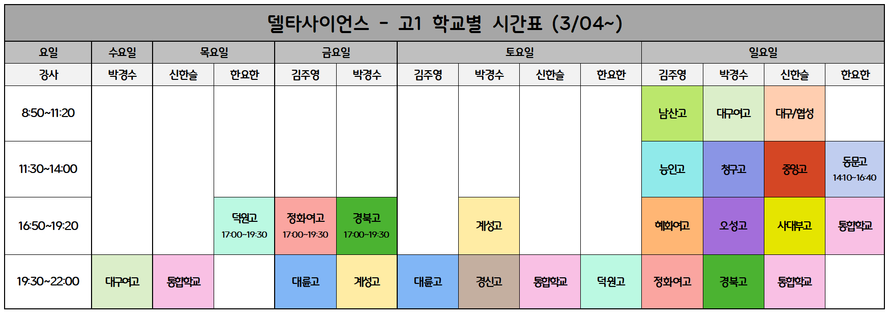 ✅ 대구여고 - 일요일 19:00~22:00