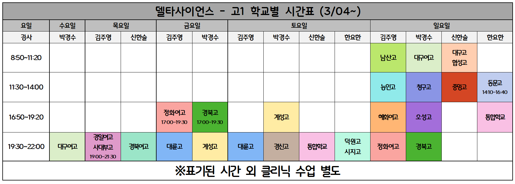 ✅ 대구여고 - 일요일 19:00~22:00